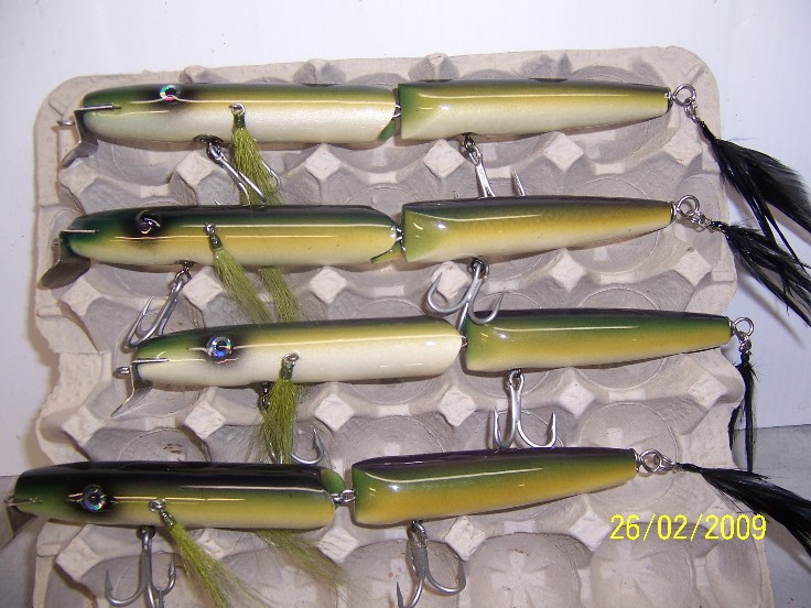 The first picture is of the very first one I made... I still have it and it never caught a fish.... below it, is the first sucessfull version, not laminated and sporting a sufster lip, she was front heavy casted like crap but she caught many a fish before her retirement...