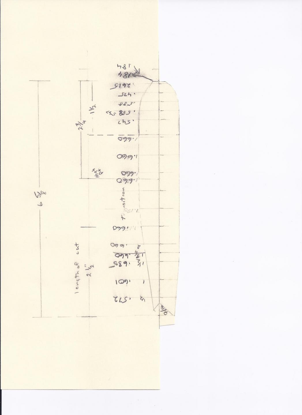 I draw them onto heavey stock paper after doing them on graph paper where I also place all my notes. Then take the heavey stock paper and place on a plastic sheet, where I have drawn a right angle center line axis and trace the outline onto the plastic. Place plastic in the vega and turn a plug with it. I tweak the plastic until it is just a smidgeon over what you want in the end. Sand and voila. Using plastic allows for you to make it just a little fat, so you can tweak it to perfection. I have attach a recent card stock drawing of a Montauk Darter.