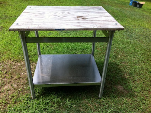 Great fish cleaning table......top is just 3/4 inch plywood but some of that plastic board would work great! I used it as a shop table! $25 picked up!