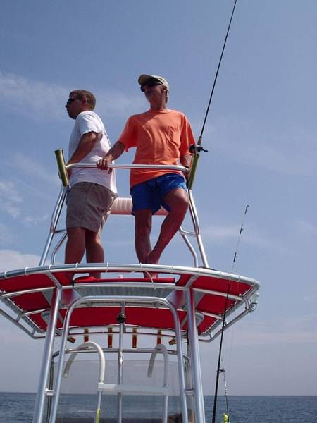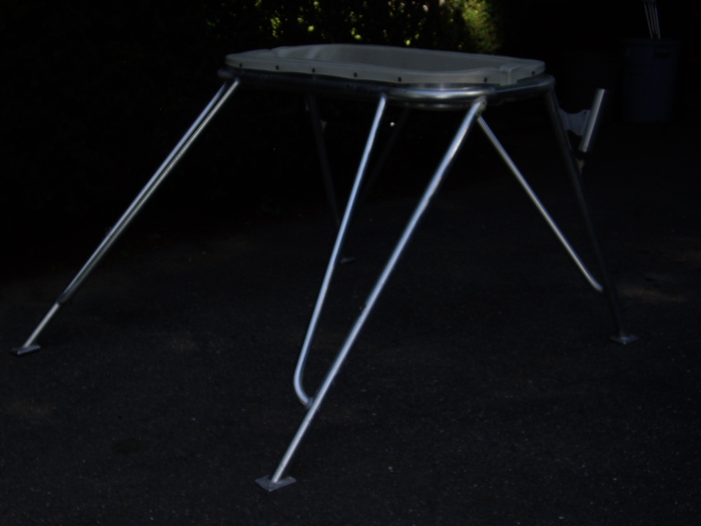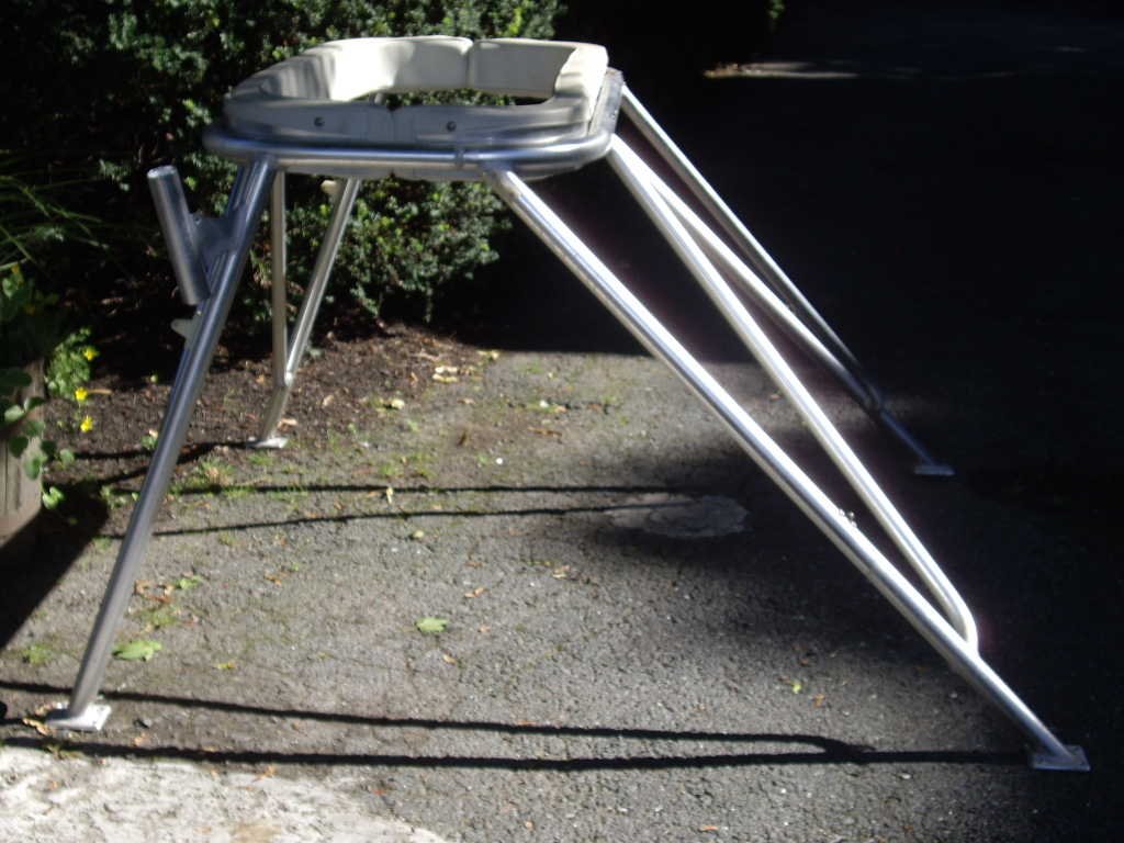 Not Exactly a tower, but fastens to coach roof or a big T top. Two rocket launchers. Aluminum, has 2' x 4' padded area to stand in. 39" tall. Base is 62 3/4 wide in rear, 61" wide in front to outside of feet. 69 1/8" front to rear. $500 or best offer