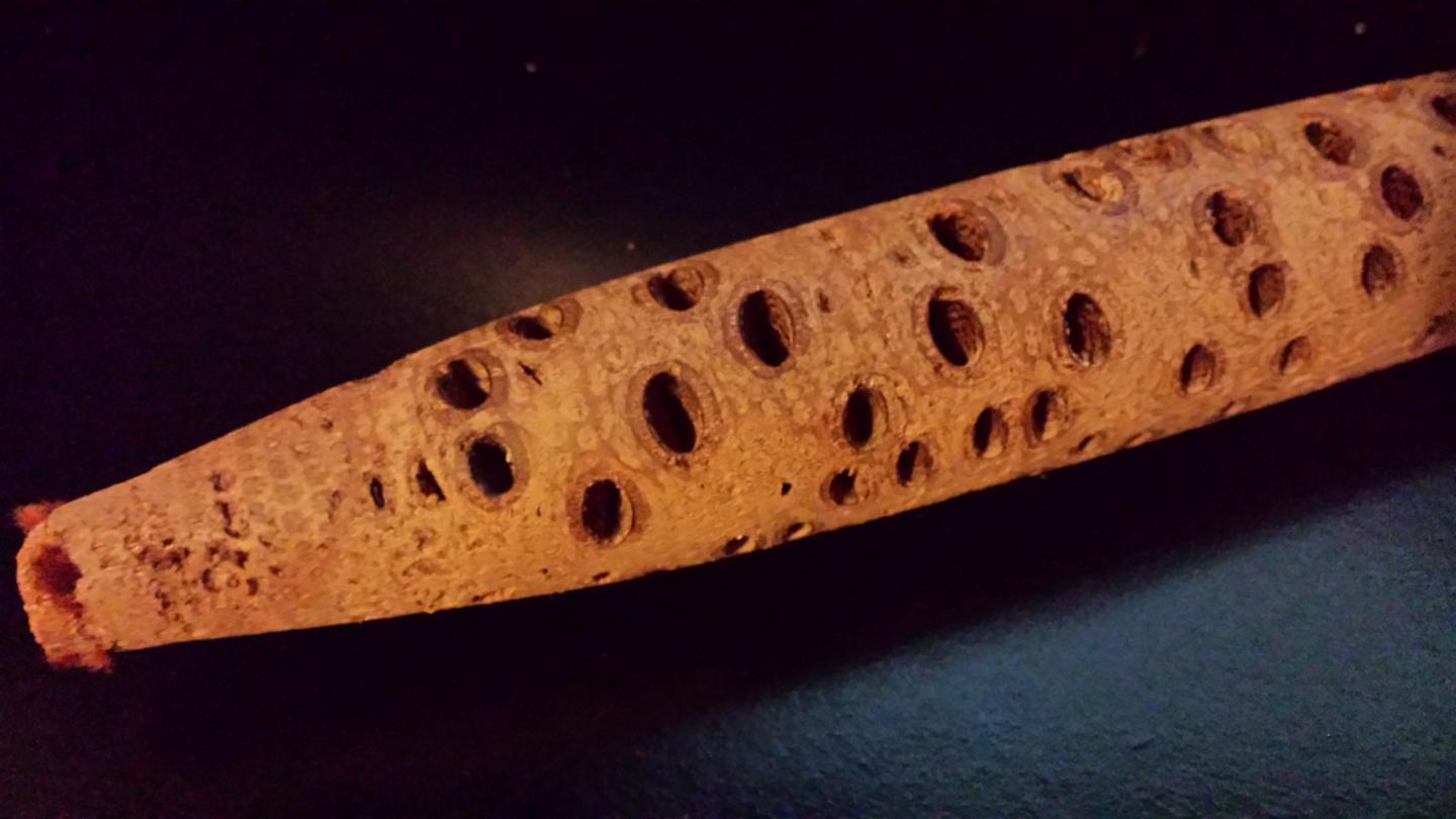 So last month when I was at Woodcraft, these guys peaked my interest. I ended up buying it to see what it was like to turn. For those that don't know what it is; it's called a Banksia seed pod, and it's from the Banksia plant/tree in Australia. It's hard as hell, but once it's turned down a bit, it's really cool. As it is right now, it's about 7 3/4" long. I haven't weighed it, but it's pretty damn solid. It does however float, really well. Anyway, it's pretty messy when turning, and underneath all those little bumps is this red fur. But that comes off easy enough. Anyway, this is the pencil popper I've started to make, turned this last night.
