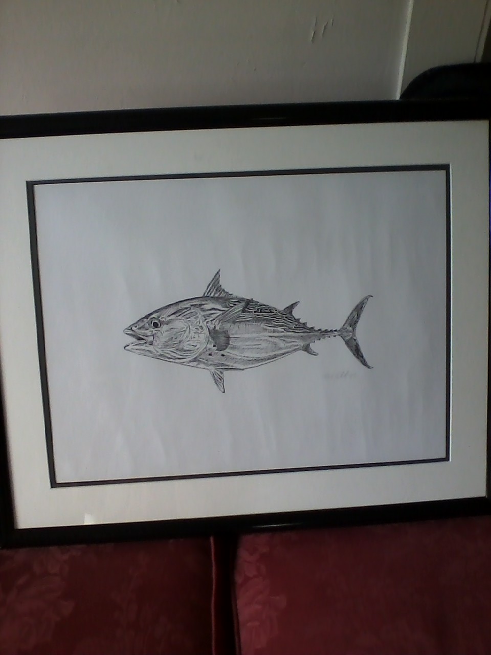 Two framed prints - Mark Lewchik original pencil drawings - one is striped bass and bluefish, other is False Albacore. moving and gotta go. make an offer. SOLD