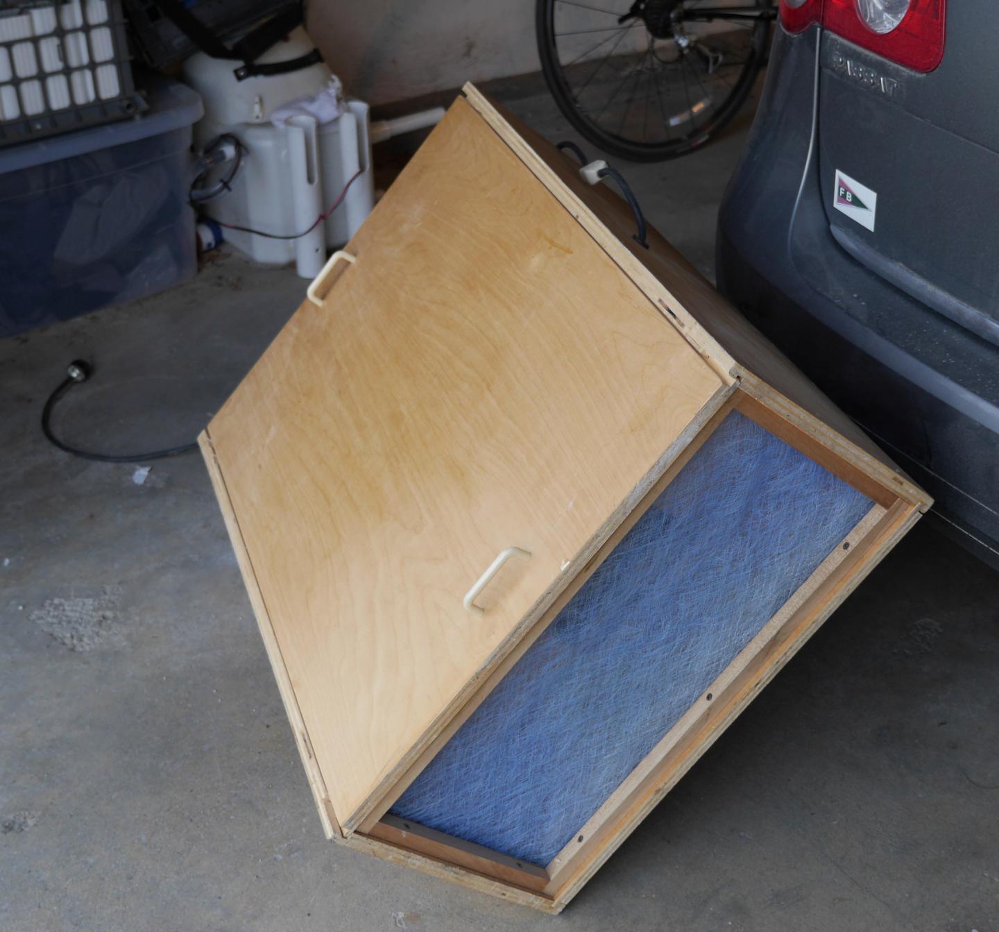 I have recently installed a dust system and exhaust fan in my woodshop so I no longer need this ceiling or wall mounted Shop Filter. This air filter removes airborne dust from your 250 sq foot shop in about 5 minutes. It uses a squirrel cage blower and 3 pleated furnace filters to effectively remove dust that would get into your lungs.