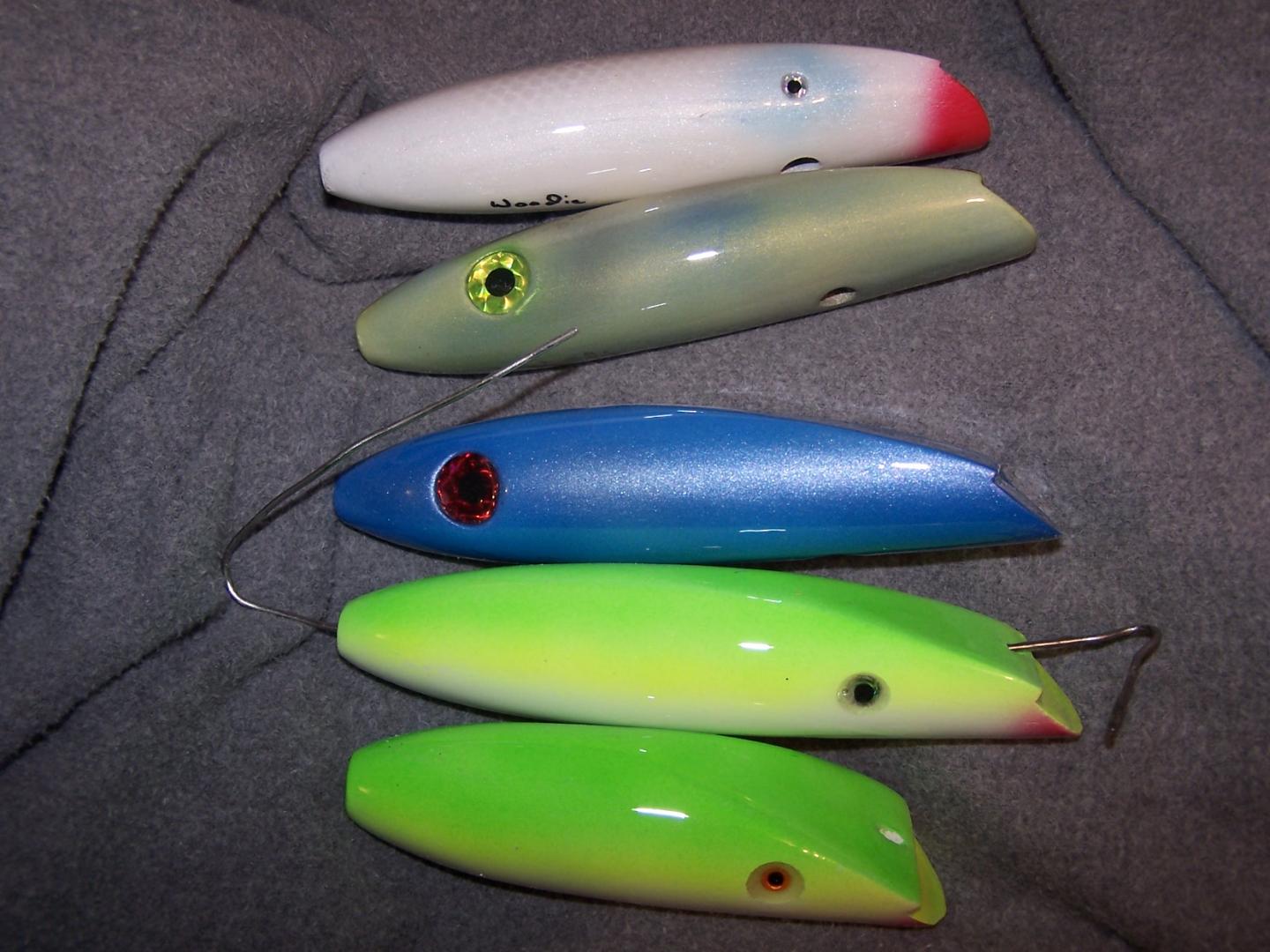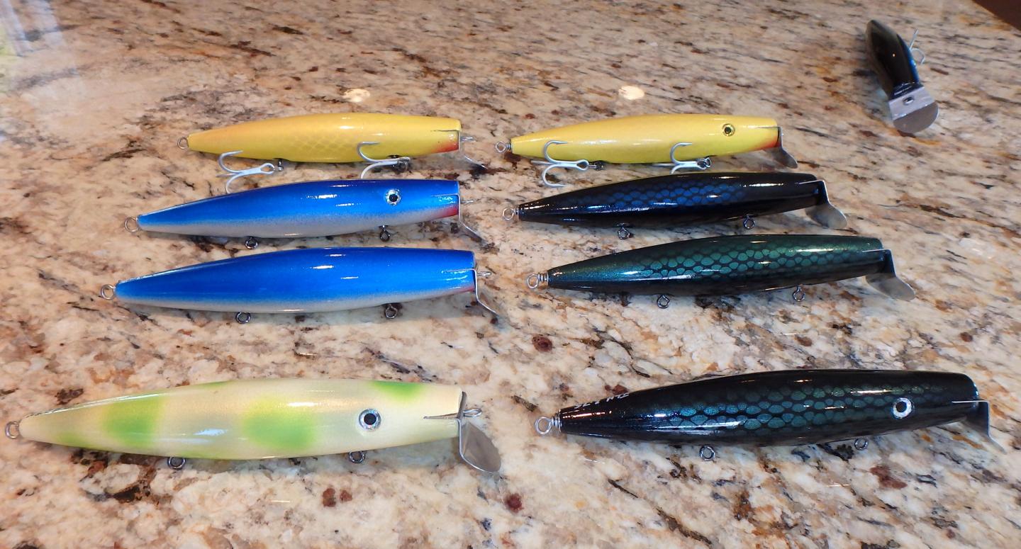 et tal: first is a lure made in surfster and topwater swimmer, cast a huge wake and sits lower in the water than lighter versions.