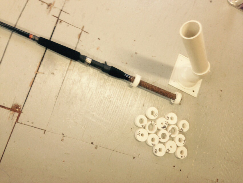 I have a PVC holder bolted to the leg of my workbench, sans doughnuts. I just use a rag wrapped around the butt and use a mobile bucket of rocks, paint can or whatever as my weight to flex the rod.