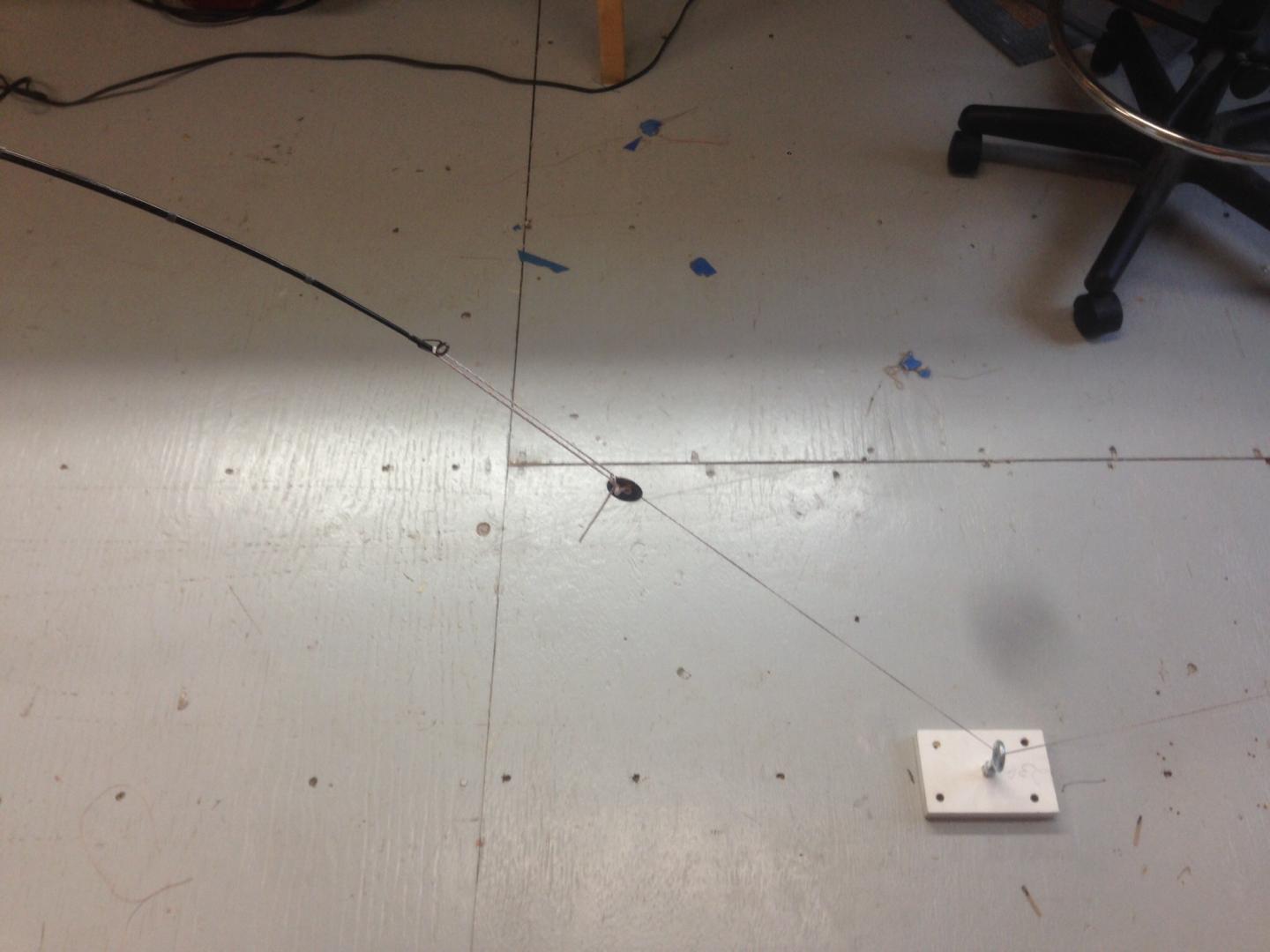 I then use a piece of nylon line to tie the tip down to the bucket, run mono off the reel, through the guides and out the tip with a sinker on the end. Tie everything off, adjust the guides, add/subtract as needed and measure them up.
