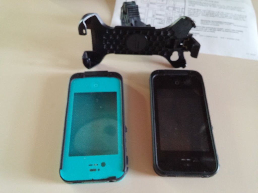 2 lifeproof case's for Iphone 4 or 4s with headphone attachment and bike mount or grab rail they are functional but i wouldn't swim with them