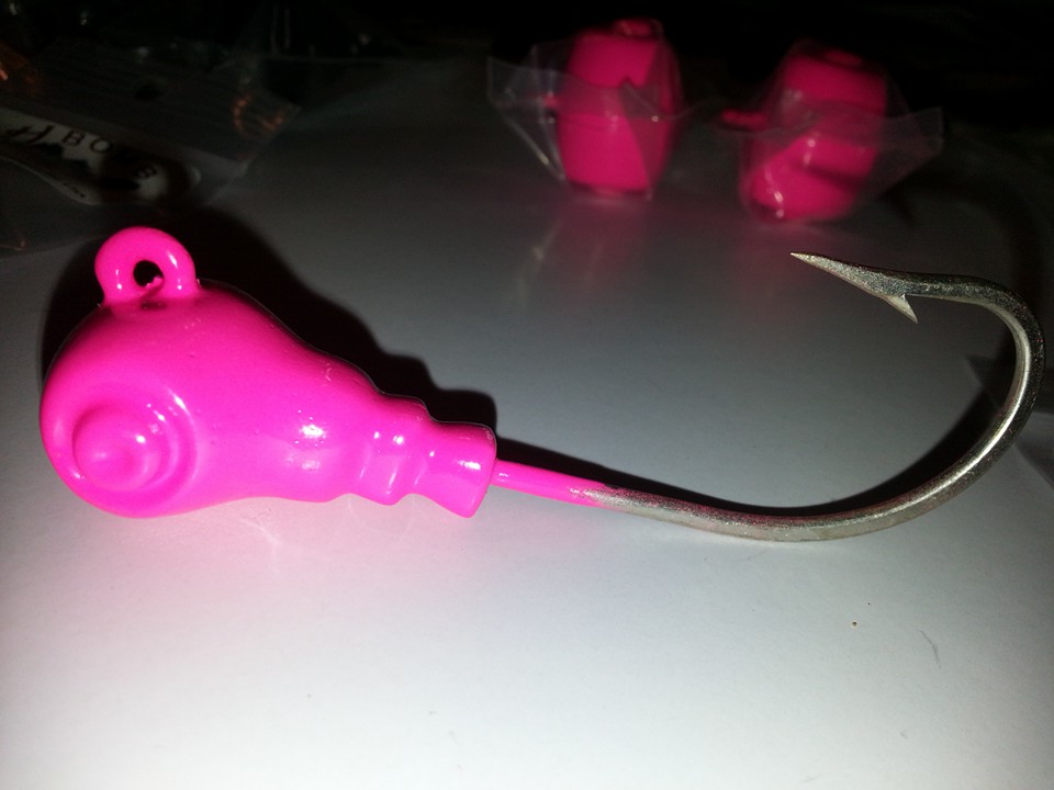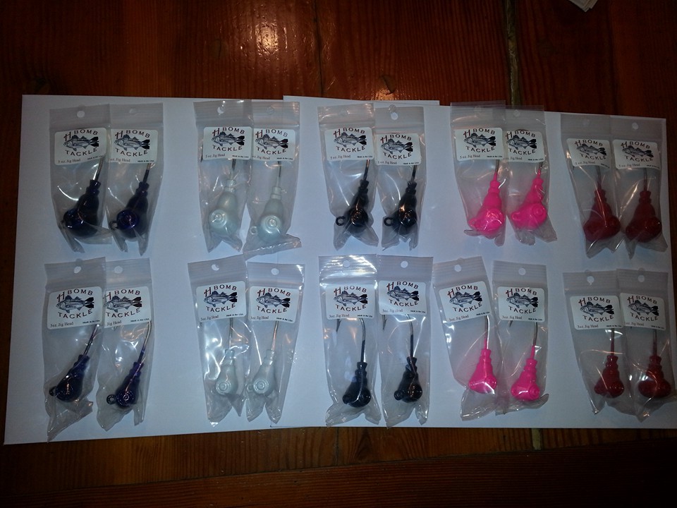 Lot of 20 powder coated custom jig heads with Mustad hooks. 10 (3oz) and 10 (5oz) in red, pink, black, white and purple. These are left over from my company and looking to downsize (please take note I am not advertising the company, since we are not longer making/selling tackle retail or wholesale) We have a lil one now and it is not feasible to operate out of the house so I am selling off the stock left over. I will ship them to you for free or if you want just one color I could do that as well, am flexible - no use in holding onto all of it. $50 for the lot of 20 or $2.50 a piece - free shipping. (I also have a bunch of finished jigs and 8" hoochie skirts as well)