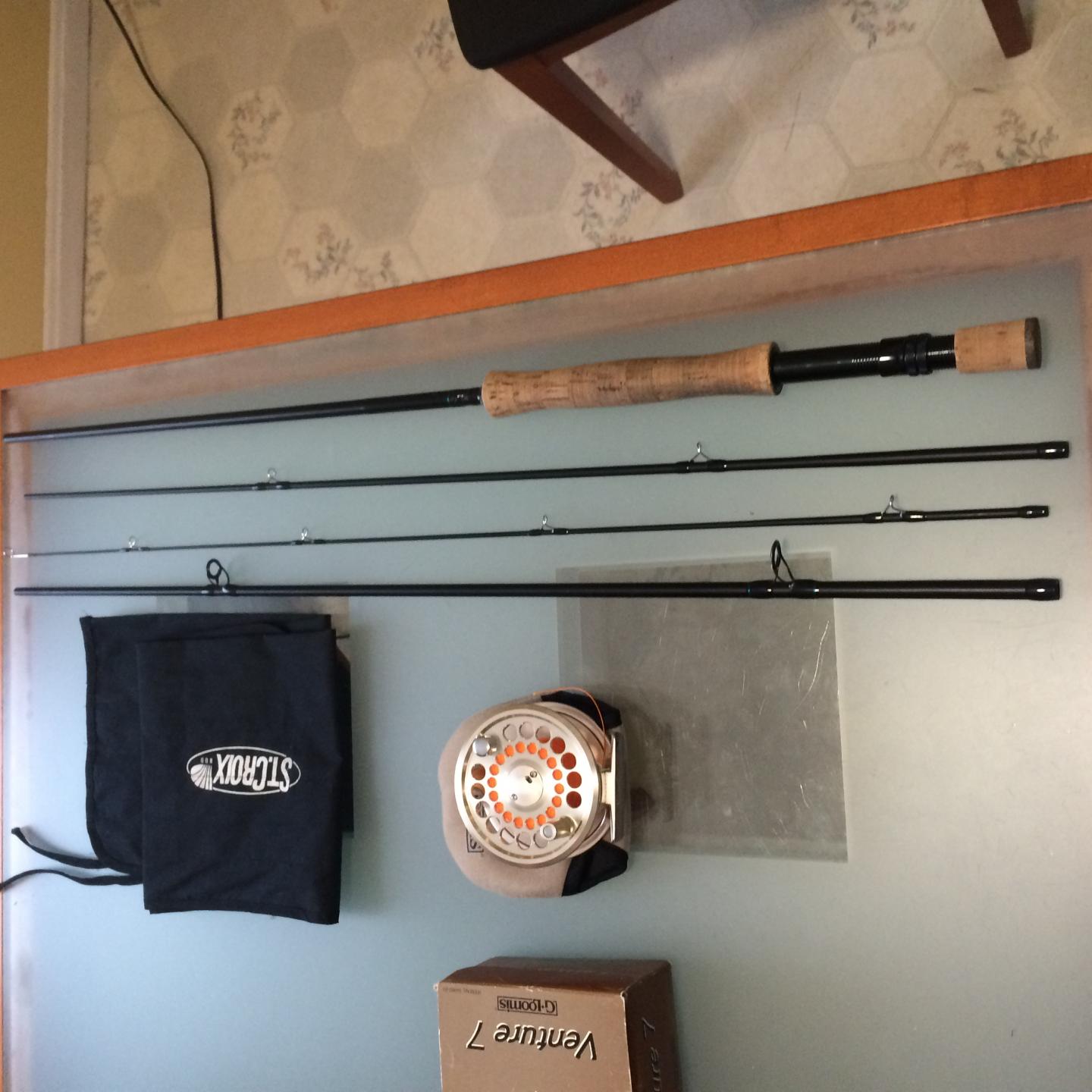 I've got a 9', 8 wt, 4 piece st Croix rod - handle shows some age but rod is pristine. and a g loomis venture 7 reel in excellent condition. schoolies will be here soon. $125