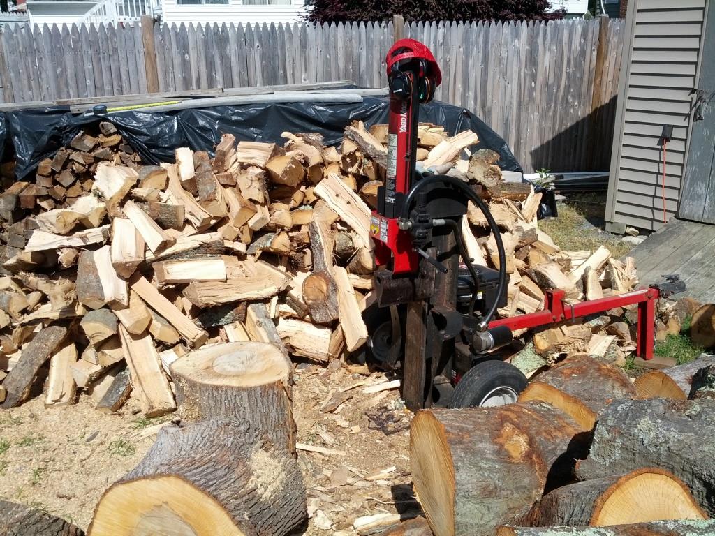 I picked up 7-8 cord of log length for $700 delivered and rented a 30 ton splitter from a new Shauwnessey in Plymouth, which was the balls. It had a hydraulic lift on the side for the big boys and a 4-way blade that made splitting the smaller stuff a one pass deal. I think I have about 4 cord cut, split, stack and most of it under cover. I have a friend giving my Echo 16" saw a little TLC and then, I need to do some more cutting to move some of the wood off to the side of the driveway.
