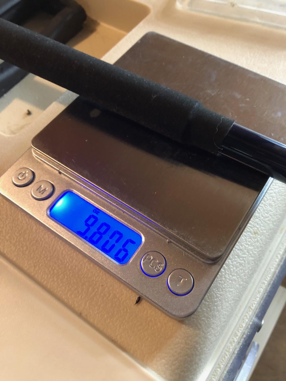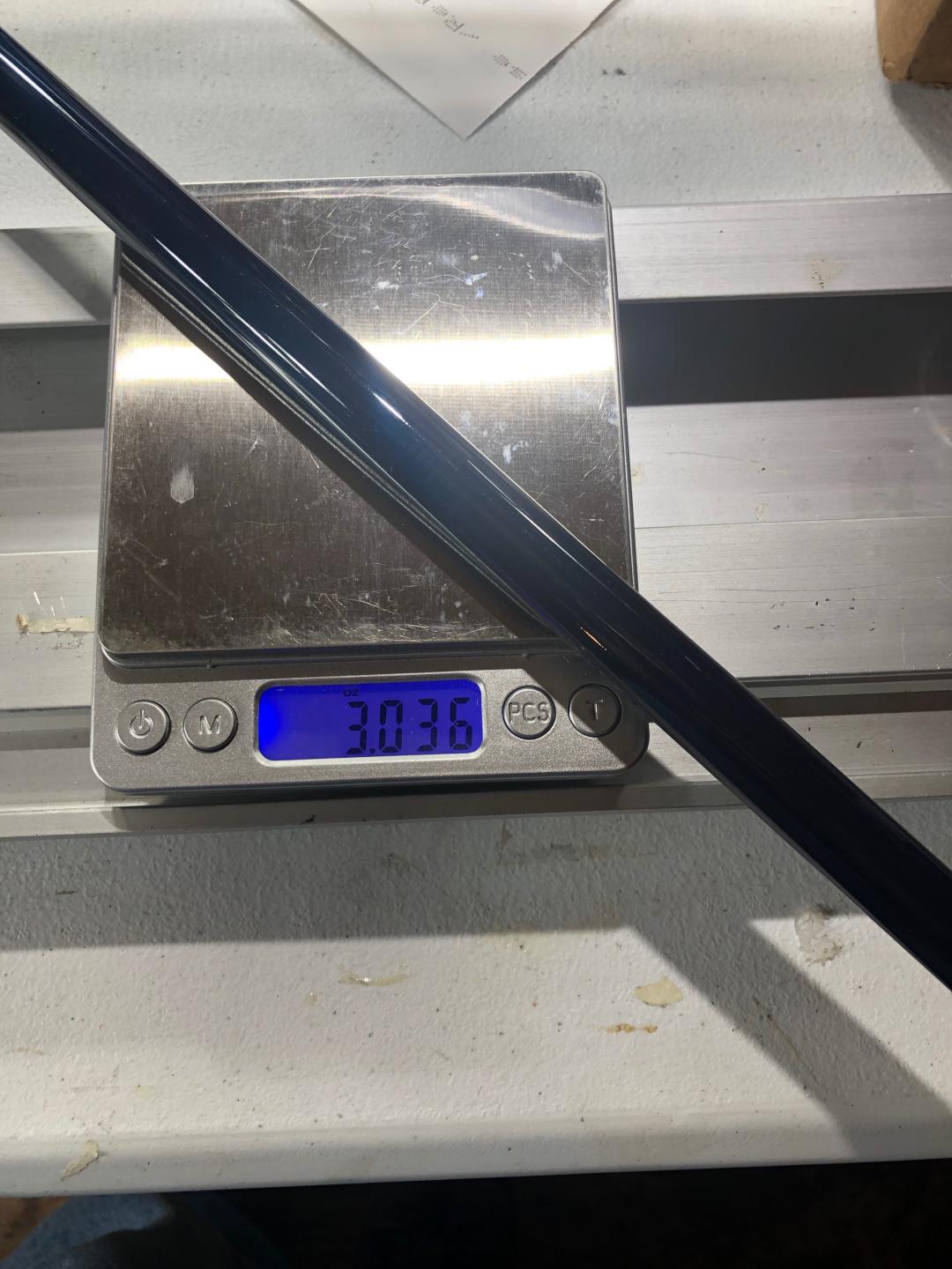 I got rid of the grip tape which enabled me to get the 20mm shrink over it. Butt cap on as well. Probably a little while before I get back to it. Current weight with the handle on it.