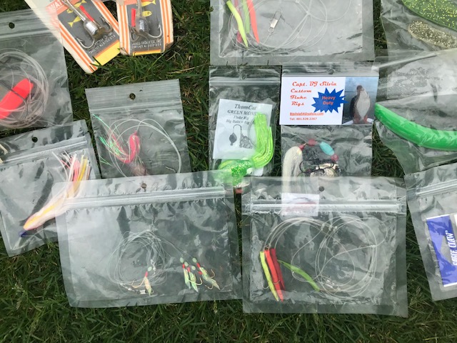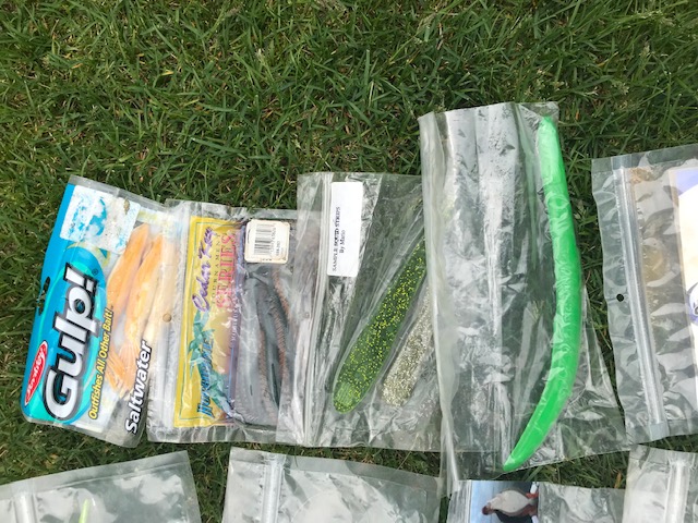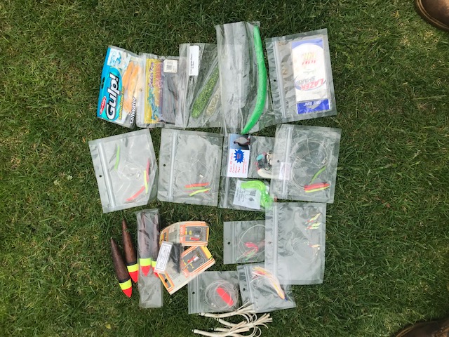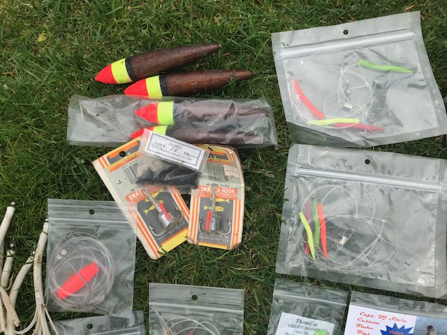 4 large balsa floats, 2 snag hooks in package, tomcat and capt silva fluke rigs, couple misc fluke rigs, 2 sibiki rigs, 3 older style mackeral rigs, some gulp baits, squid strip and sand worms. $30 plus shipping.