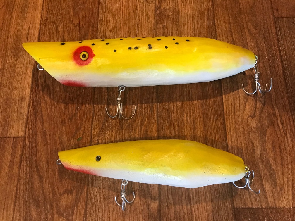 How much should I charge for these two custom plugs? No lathe so I used my chain saw and to practice with a new toy, be a good man cave addition or if someone owned a marina and wanted a cool display. In light of what fishable custom plugs go for I'm thinking $50 maybe. Probably throw up on Yahoo marketplace and see if I can get $50 each.