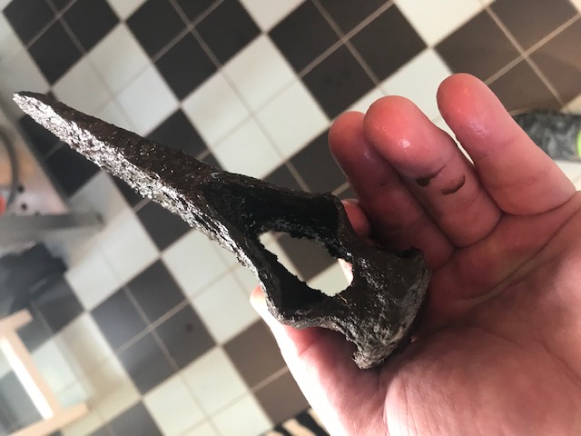 Told the kid to get out of the house and he used his metal detector to find this nice old axe head in the back yard. It clearly wasn’t made in a factory. And ideas to the origin?