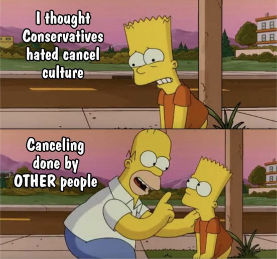 Who in the GOP, is a big fan of cancel culture? I mean, your Simpsons meme is extremely impressive, but doesn't provide all that much supporting evidence. Zero, in fact. You've convinced yourself that it's conservatives, not liberals, who embrace cancel culture?