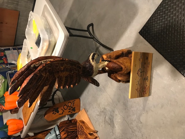 Will have a tote of 13", 9" and 6" jerk baits, 7" and 5" split tails and one tote of misc. smalls, along with a bunch of carvings.
