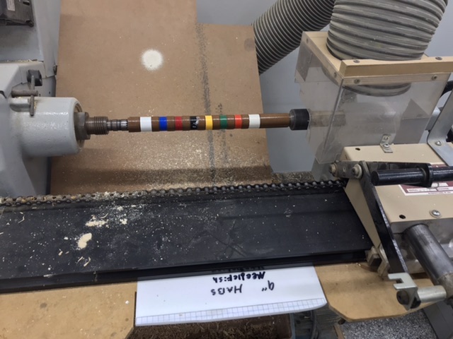 Spun a couple dozen blanks . Trick here is finding dead center and marking with an awl the perfect dead center. This is needed to establish symmetrical flat sides.