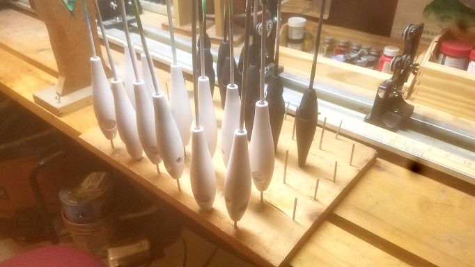 BTW I still use on occassion Val oil. With less than a quart left , I'll use it when I need a quick turn.around. < a week of drying. My varnish/ turps is a 2 week dry time. Use to be 1 week but had some bleed issues so Ill do.longer. Hardwoods ...birch 30 minutes. Maple which i try not to use because if its not sealed well use get cracking between the hook holes and weight holes, Ill either double soak ( repeat next day) or epoxy seal ( messy).