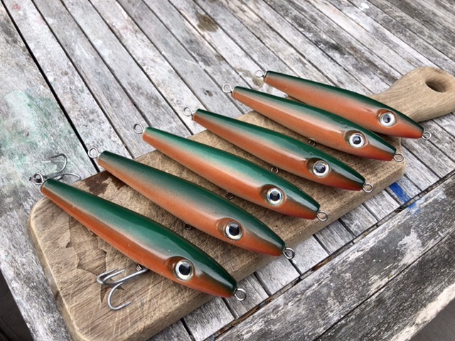 Soon Ill take a couple to drill hook hole and start adjusting weight locations. Ultimately I'll be trying to achieve a level slow sink that will obtain a neutral buoyancy when retreive is stopped and a spook like reaction when rod tip is twitched.