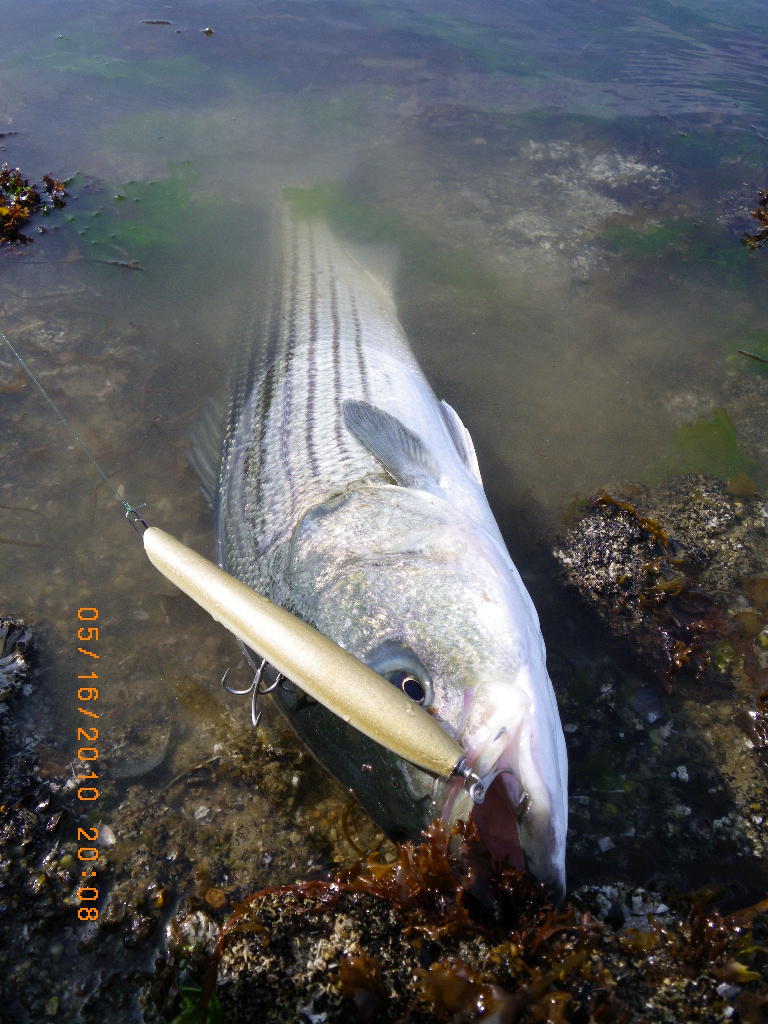 First fish on one of my own plugs.Got this fish on a pollack pencil I made. Its about 2.25 oz and floats with a slight tilt...works real nice on a slow retreive...I feel accomlished, now back to eels...