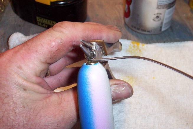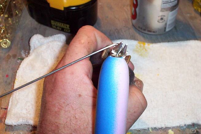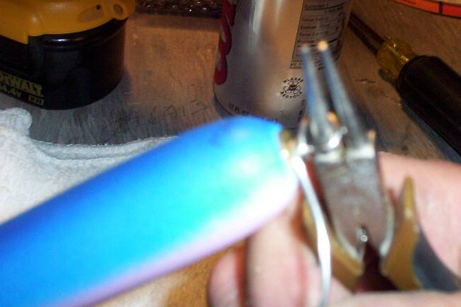 Ok, here goes. First I bend the wire at approximately a 45 degree angle to the plug. Sorry I deleted this picture without saving it. Next I grab the wire at the bend with my round nosed pliers and bend it back over.