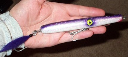 That being said my vote goes to Bernzy's Howdy, that plug in the hands of someone who really knows how to use it, could catch fish in the middle of the Sahara Desert. Next would be Bassmaster's needles, not just one particular one but a variety of them. Lastly would be Numbskull's jointed eel plug. He has been making plugs longer than most on this site though he recently started posting, a doctor by trade, his passion is fishing and we met when I was sitting in a bed in the intensive care ward at a local hospital. He wanted to know a little about me and when fishing came up, well the rest is history. His plugs are not fancy but they do the one thing that I admire most in a plug. The dam things catch fish and lots of them and the jointed eel has outfished the real thing on more than one occassion. Just unbelivable really.