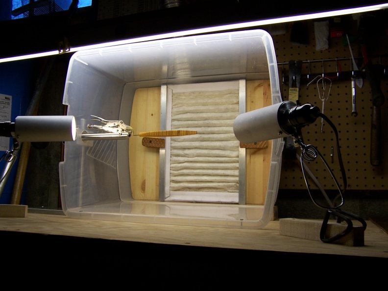 1 Rubbermaid "Under the Bed" storage container. I only recommend using Rubbermaid products for any application that might involve drilling or cutting holes. The other brands all seem to have a tendency to split while you're drilling them.