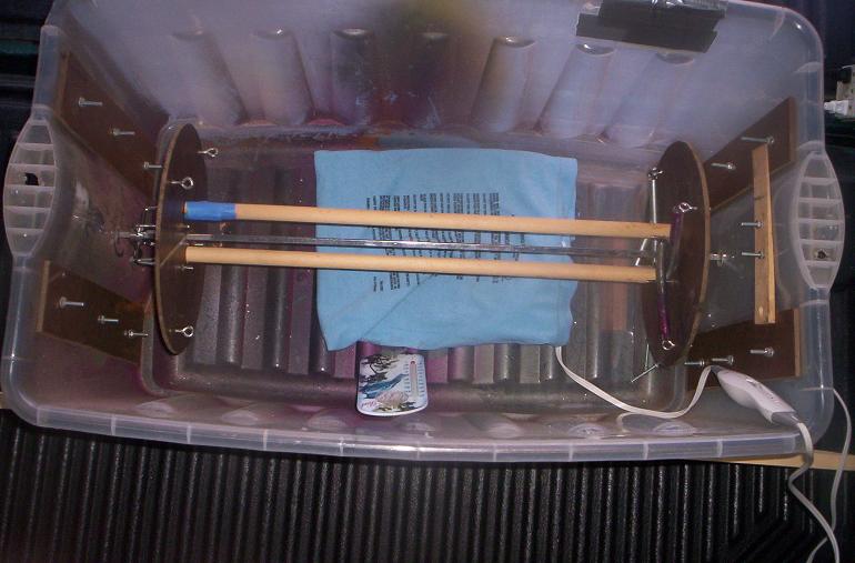 Dave, THAT CONTRAPTION IS PROBABLY MORE DANGEROUS THAN JUST DRYING IN THE OPEN CELLAR! You have heat distortion on the plastic tub showing and a heating pad is notorius for shorting and going up in flames never mind putting it in a bin wherte the epoxy is off gassing. I don't know if I would do that.
