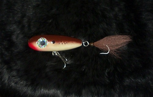 LOOKING GOOD the slammers swam great , I took a bunch of outher plugs to swim, an out of all of them only 1. was a DUD, it cast great, so I know I weighted it. pulled the eyescrew out, an putting in a BIG LIP I got from mike. heres a pic of the little trouble make w/ screw eye out. going under the blade soon