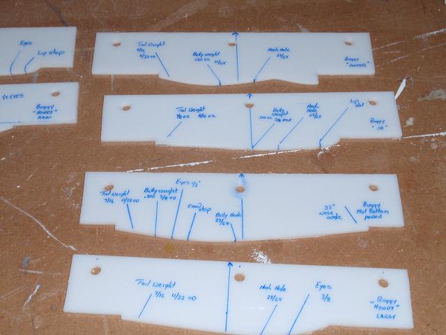 2. place lure between centers centered. Replace the pin the follows your template with a pencil or marker. Slide in lexan, done template made.