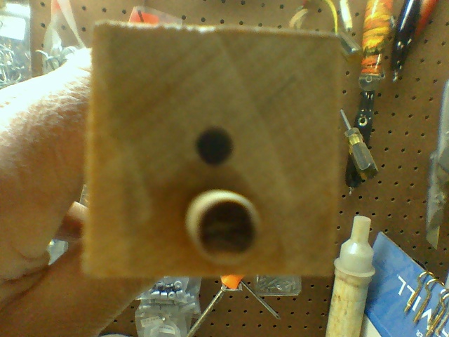 Prof M. here is the rear view of my weight placement of my belly weight Wadd. the hole 3/16" and below a 1/4" dowel plugging up the remaining hole. Put entire blank on lathe and spin away. I do go slower when I approach the dowel area.