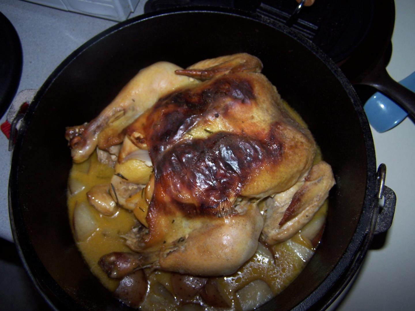 Here ya Go raven....Garlic/lemon chicken cooked in a dutch oven out in the back yard.....