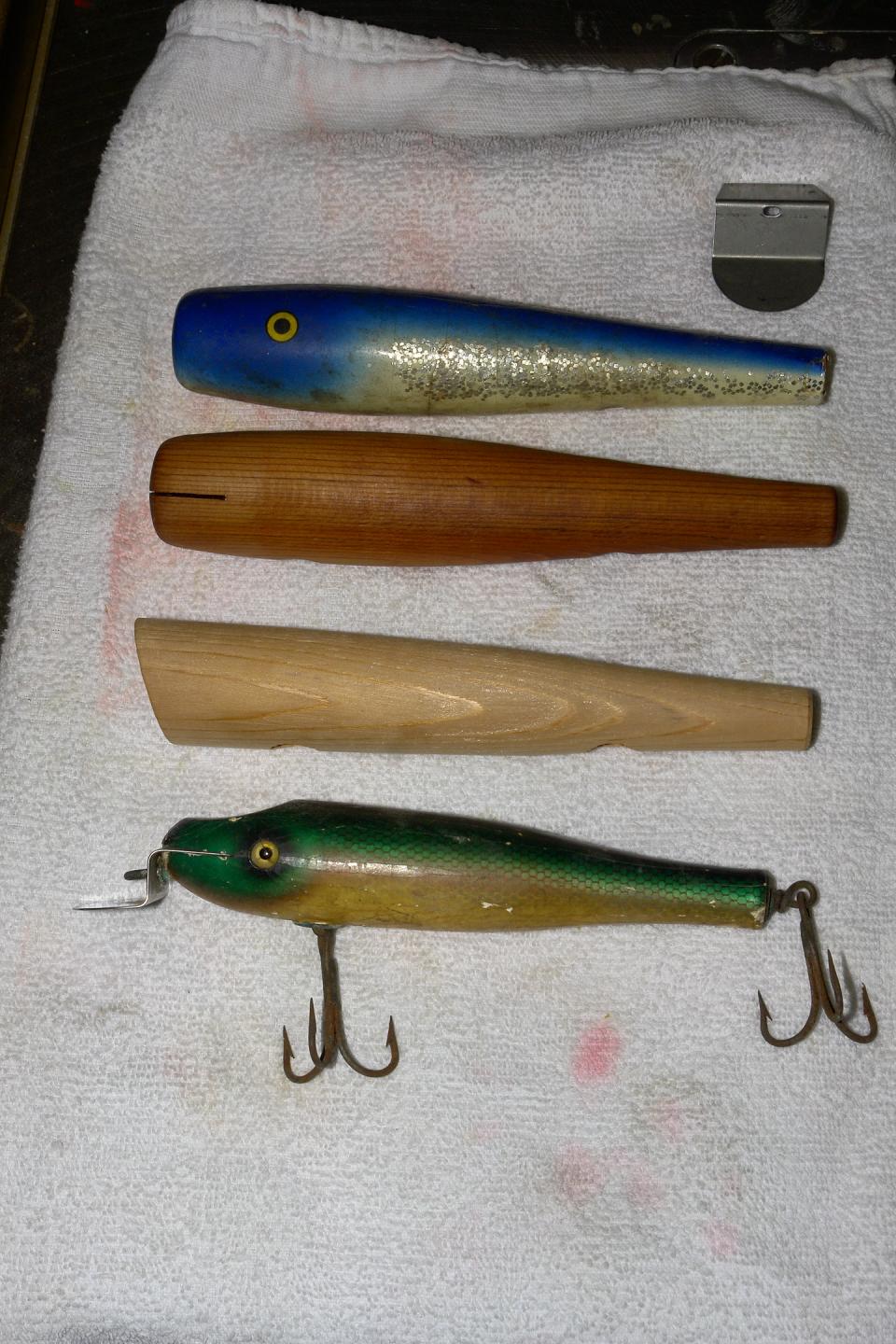 Here's a pic. of the copies I did today and the lip (high slot), and a Cap'n Bill's popper so I have a matched set! Also found a Masterlure Snook in my buddies stash, work on that tomorrow.