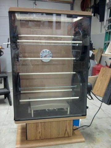 Just a box, plexi doors, two bulbs, rehostat, on off switch, 4rpm dayton motor, wire spool, some angle iron and screen door rollers.