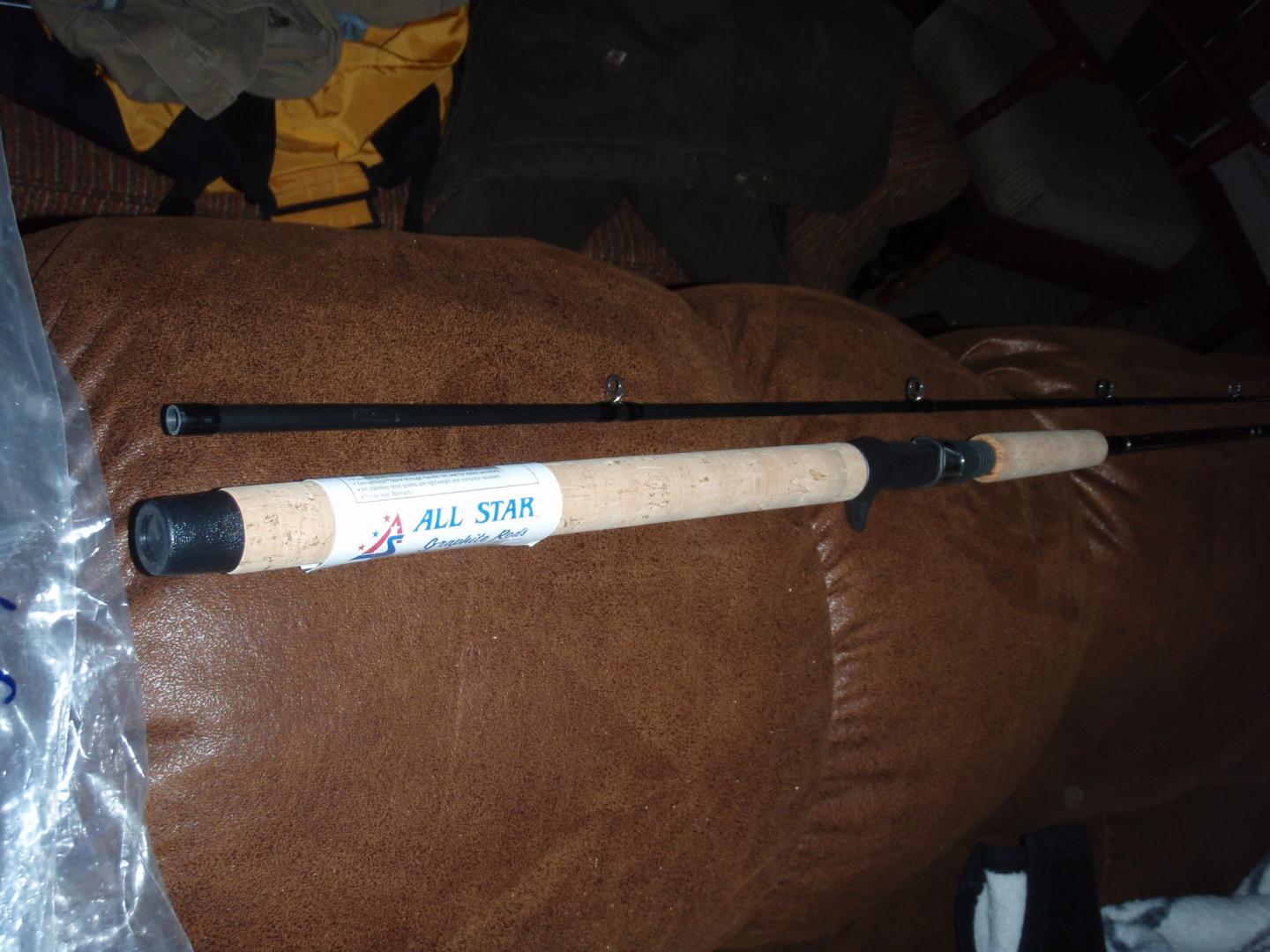 This is a sweet rod, i won it at TFCTFN as the door prize. However i have way too many conventional rods and this will not see any use. Its new in the wrapper. The 1-6 rating is probably way off. I would think judging by the action that it would be really good at throwing lighter stuff like bombers and tins. It also feels like a great eeling rod. Allstar's site markets it as a salmon/steelhead rod.