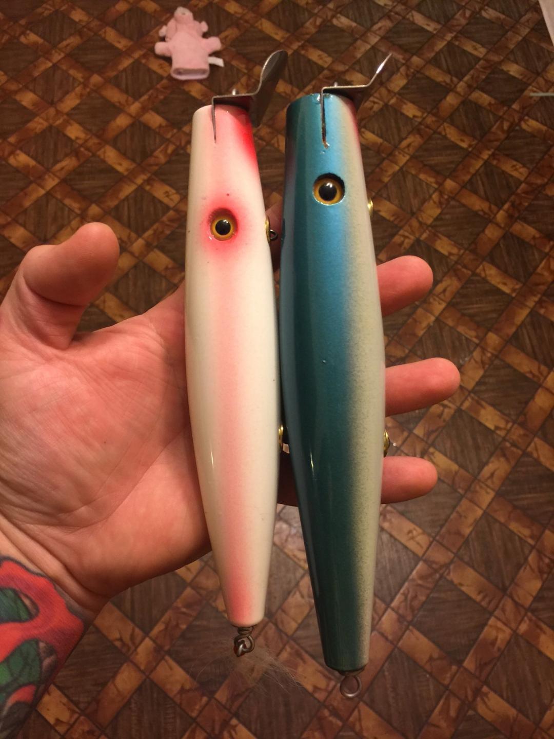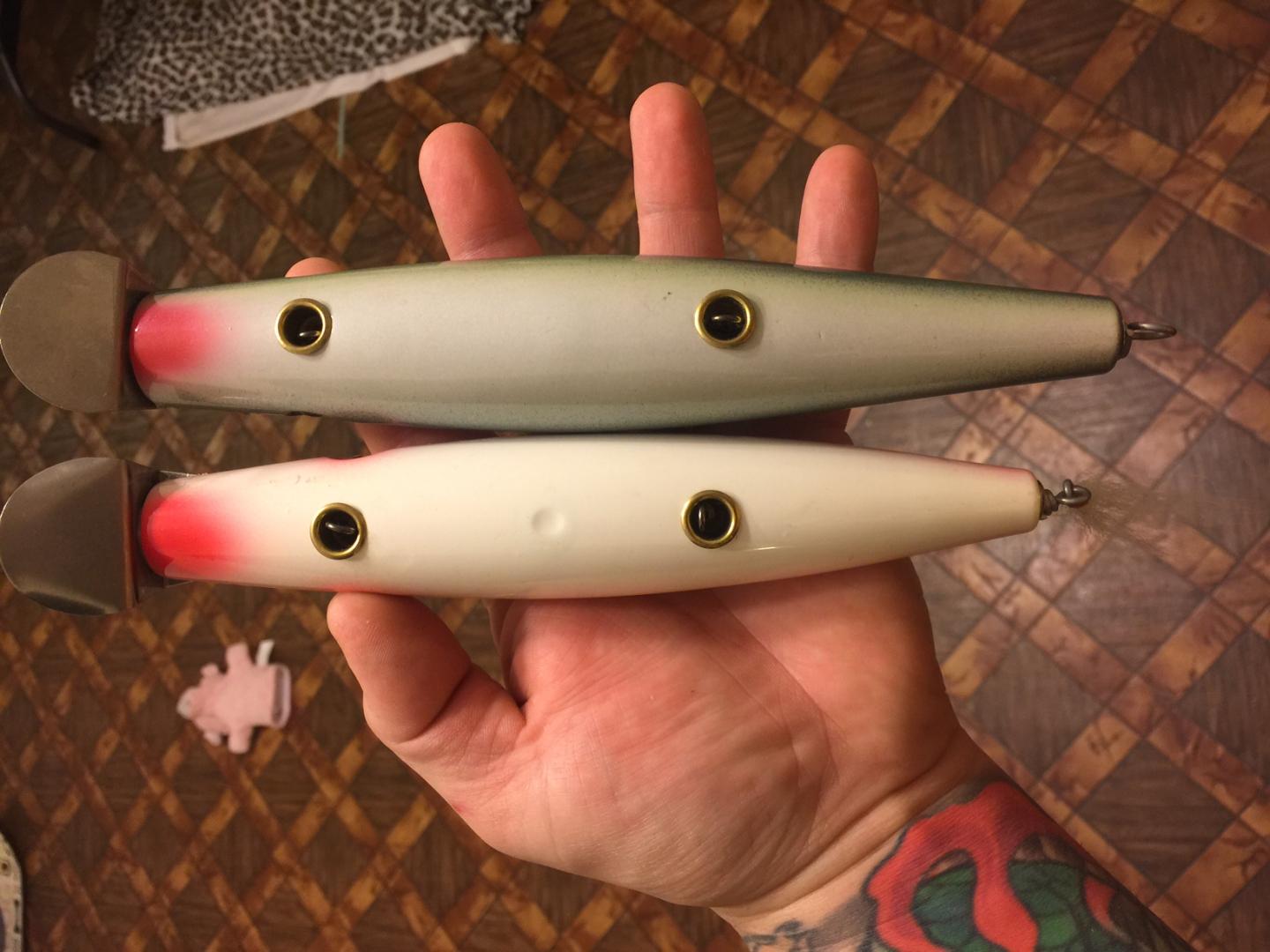 2nd pic you can see lip and line tie for the Sr. surface swimmer on right. I think the plug on left is a pine