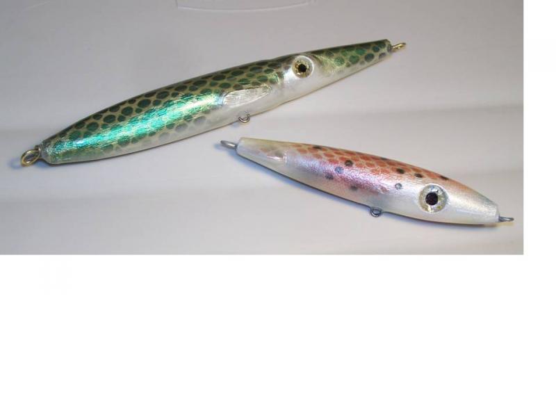thanks guys, getting itchy to fish and the water was rolling in nice at the beach this morning....the spooks and squid are about 5"-1.5ounces...the pencil 7" 2.1 ounces and the larger needle 2.5 ounces