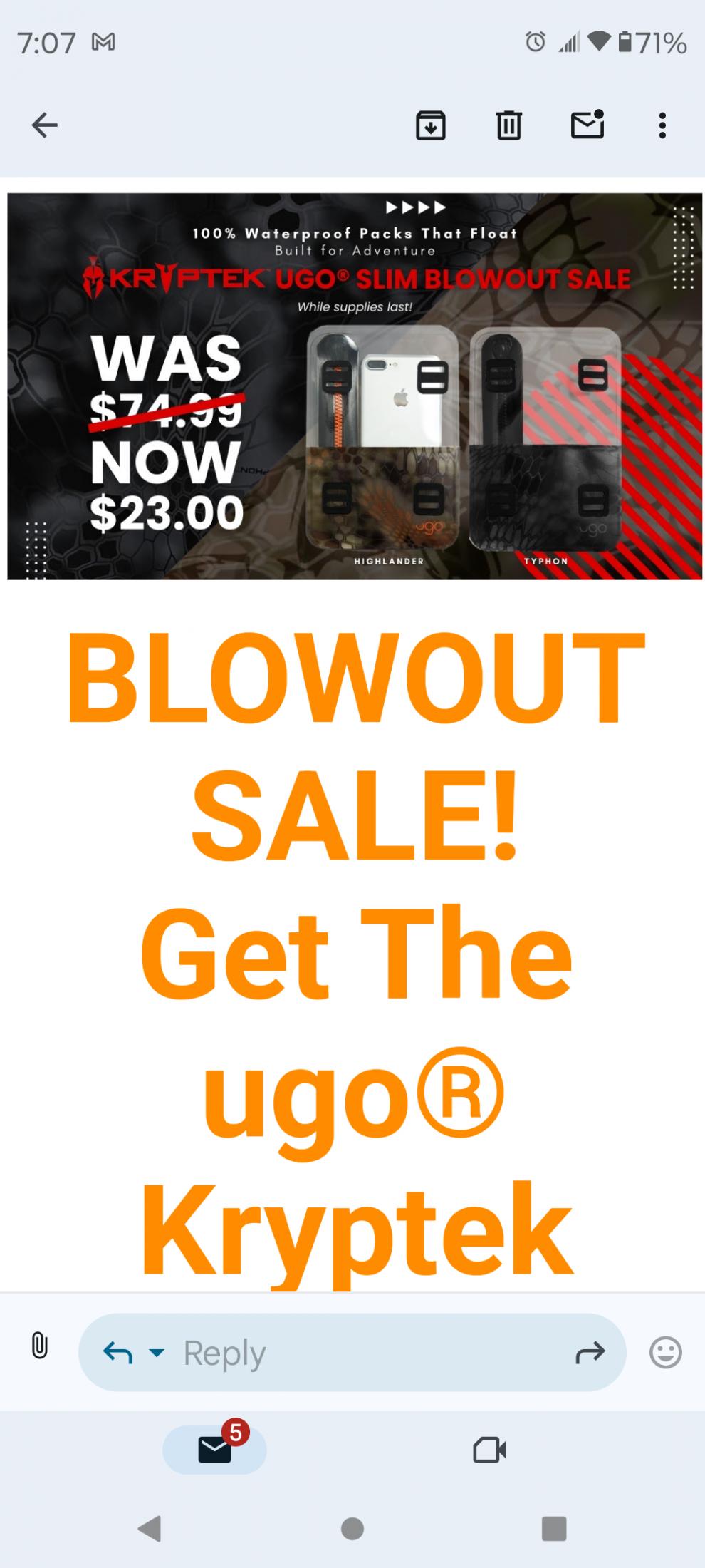 To be clear, I'm not selling. But I am recommending. Right now UgoWear is running a special on a couple of their Slim phone packs. I've been using Ugo products for like 8+ years now and won't go near the water without them. The Slim is normally $75 which I think is worth every penny. But they've got a sale running I guess they're trying to move the last remaining inventory on certain models?
