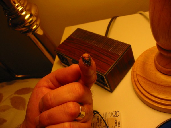 my dad last week had an encounter with the table saw. a picture says a thousand words. the other 2 are, be careful.