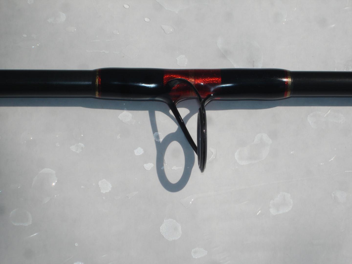Rainshadow sw1209 RX7, 20-40lb, 1-6oz: 1pc, excellent condition, no scratches, all Fuji components, 7 eyes + tip, trigger seat center 26" from butt, cork tape butt and 6" fore grip, CMS wrapped in black, metallic gold, and dark red. Great Canal jigging rod. $165 Located in south county, RI