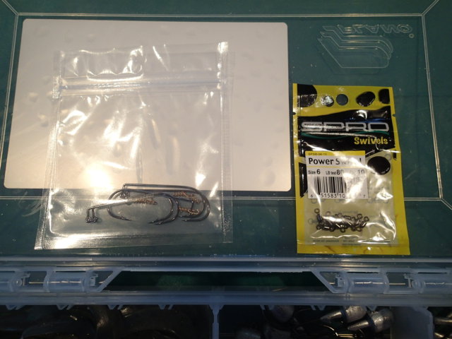 Since I've had no luck in getting the Ledge Runner Bait business sold, I'm curious is this might be the way for me to go, so I'll put out the first box. At 2011 MSBA show pricing which was already discounted, this lot would sell for $65 like to get $45. It includes 6 each of the Kalin Ultimate jig heads which I use for most of my fishing in 3/8oz, 1/2oz and 3/4oz weights. I have 10 counts each of 5" smoke grubs, 4" split tails in olive with green glitter and what I'd call a squid. Then I'd round it out in 6" half jerks my personal favorite in red/black and pearl. Throwing in a 10 count of Spro #6/80lb swivels and 5 count of 5/0 owner jig hooks with screw locks for a weightless presentation.