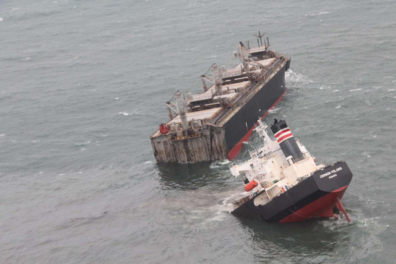 This ship ran aground off Japan and broke in two..... The photo just boggles my mind. Structurally, how could this happen? Too clean a break, IMO.