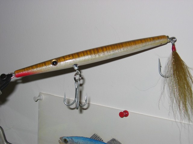 First of all this plug was inspired by an Old John needlefish plug that he came up with years ago. Those things catch fish like nobodies business. Slim, heavy enough for excellant casting and fishability and very much like a sandeel or other slim baitfish.