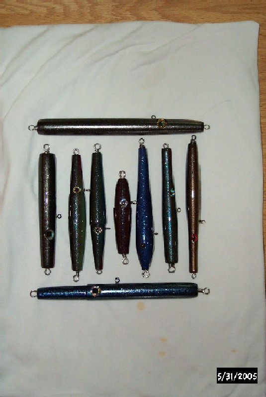 Heres some newly painted plugs, One is a Habs needle I repainted because the fish killed it last year. I wish the picture did these justice the colors are cool but dont show well in the photo.