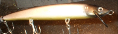 6inches, approx 1.5oz, AYC, stainless throughwires and hook hangers. Lip material was cut from a plastic tacklebox divider.