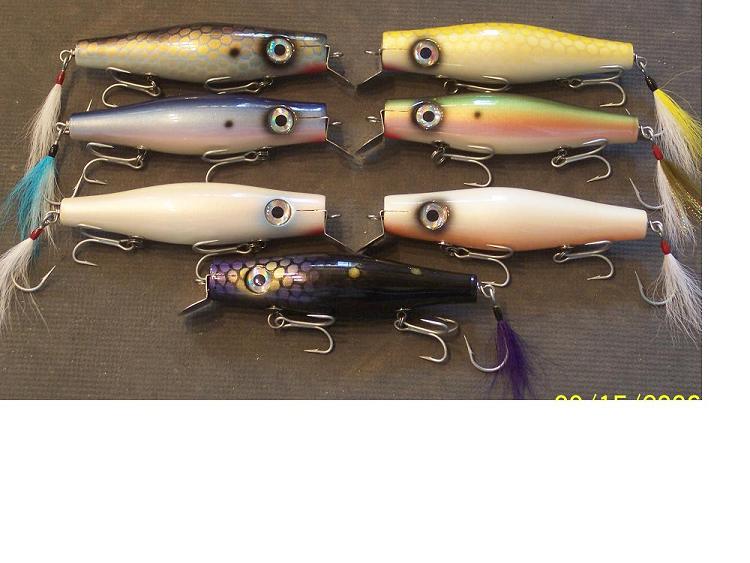 This style swimmer is the first plug I made available for sale. Since then I've only made small batches for myself and for a shop on the Vineyard. I've been asked about them a lot recently and decided I'd make some available here on SB. Plugs weigh in at about 3oz. Very limited numbers. $21 plus $5 for shippings. Four plugs or more and I'll pay the shipping. Colors are as follows