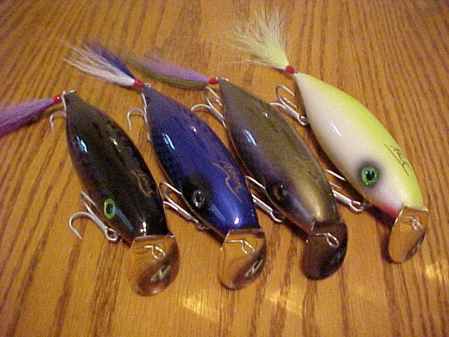of 14 different attempts over the course of 6 years. The z-lips are 5.5" and 1.9oz, and the blade lips are 5.5" and 2.4oz( my faves because I fish conventional ). AYC bodies with hand formed stainless steel hangers and thru-wires, epoxy sealed inside and out.