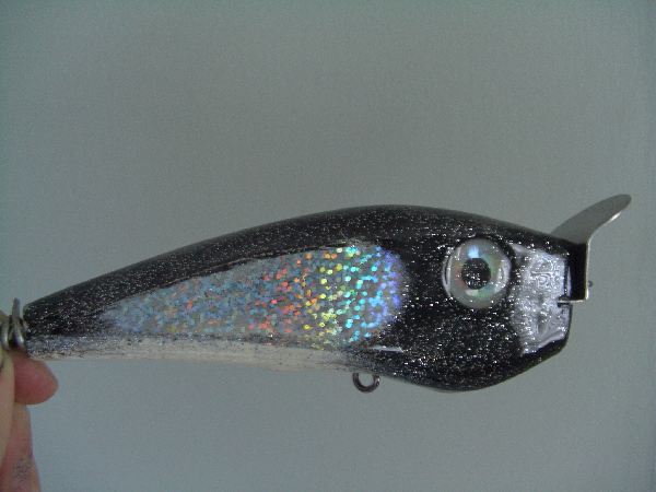 Holographic tape. Inverted metal lip. I thought it would be cool to have a metal lip that you could work all different depths with, & sinks when you stall the retrieve. Its a bit more than 3oz. Have yet to test it out but heres the prototype. I have no idea how the design will swim.