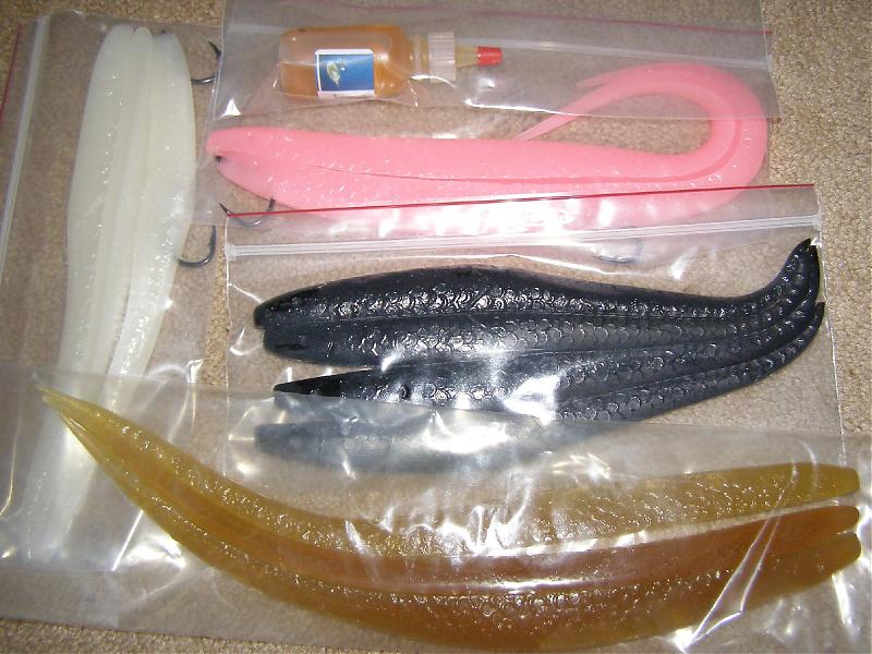 3 white 10" baits 1 rigged 2 unrigged 9.99 retail