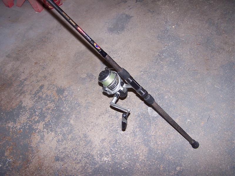 I have a Black Mitchell Nautil 7500 with a Tsunami TSTSS 902MH Surf rod. Rod is in excellent shape but has had the Tip replaced. It is reated for lures 1-4 oz. The reel works great but does have some dings from use, comes spooled with 50lb Spiderwire stealth.